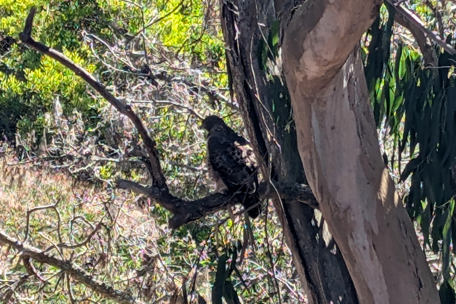 Along the way, I spotted some raptorish bird, more sensible, taking it easy in the shade of a tree.